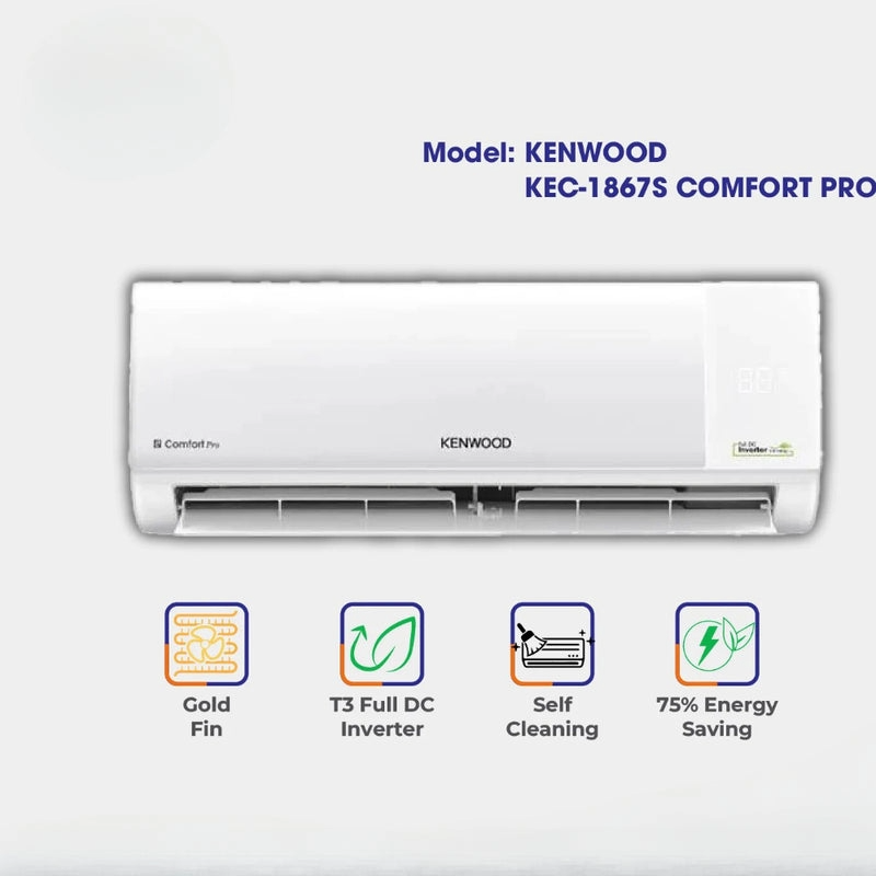 The Kenwood KEC-1867 eComfort Pro 1.5 Ton Inverter AC is a high-performance air conditioner that offers superior cooling and energy efficiency. It features a T3 Full DC inverter and a reliable PCB, ensuring consistent performance and durability.